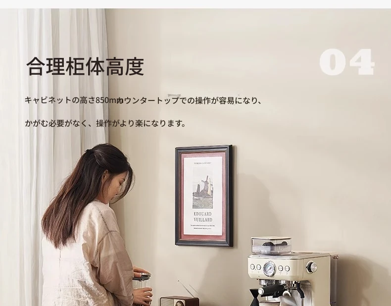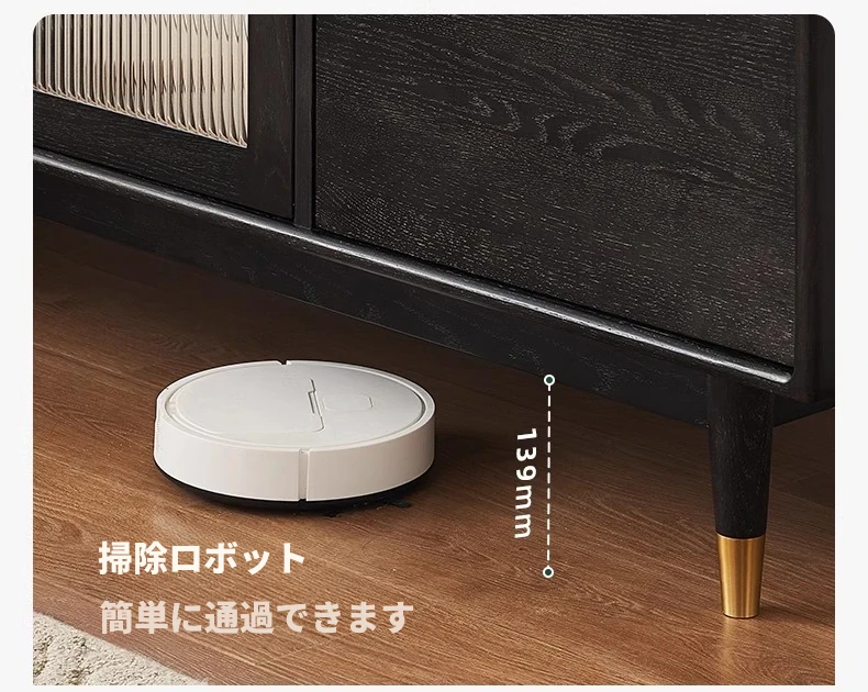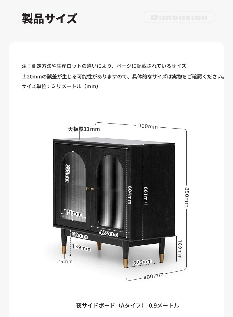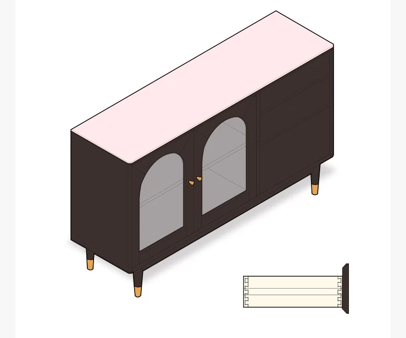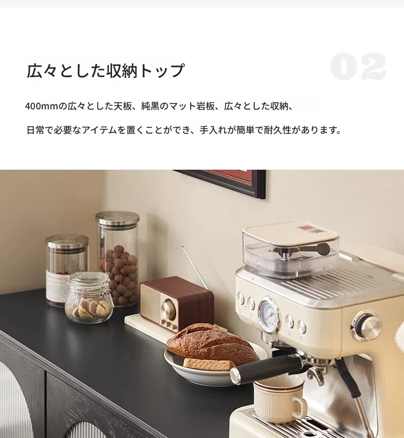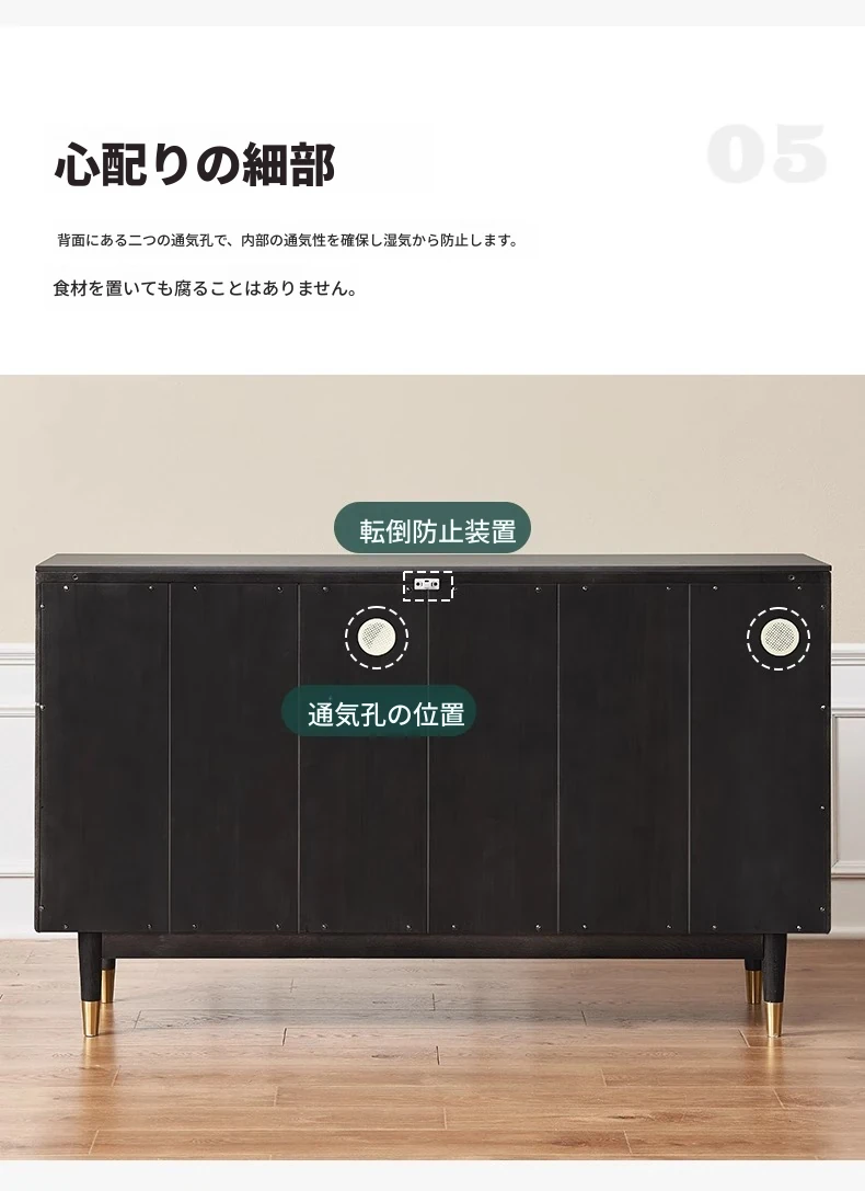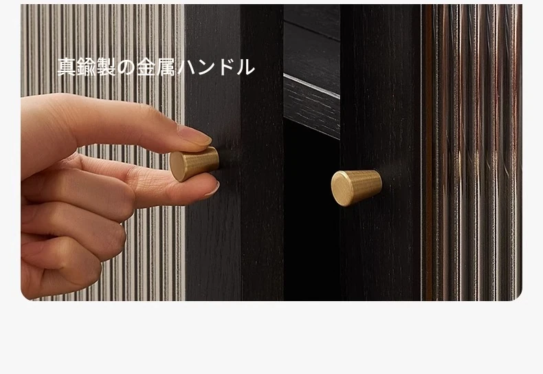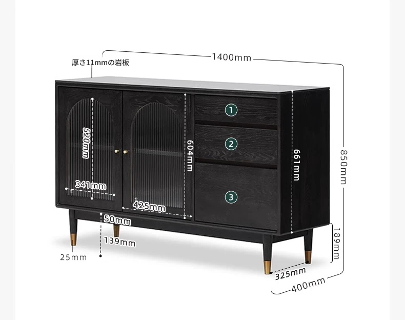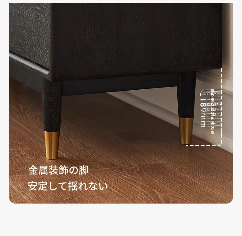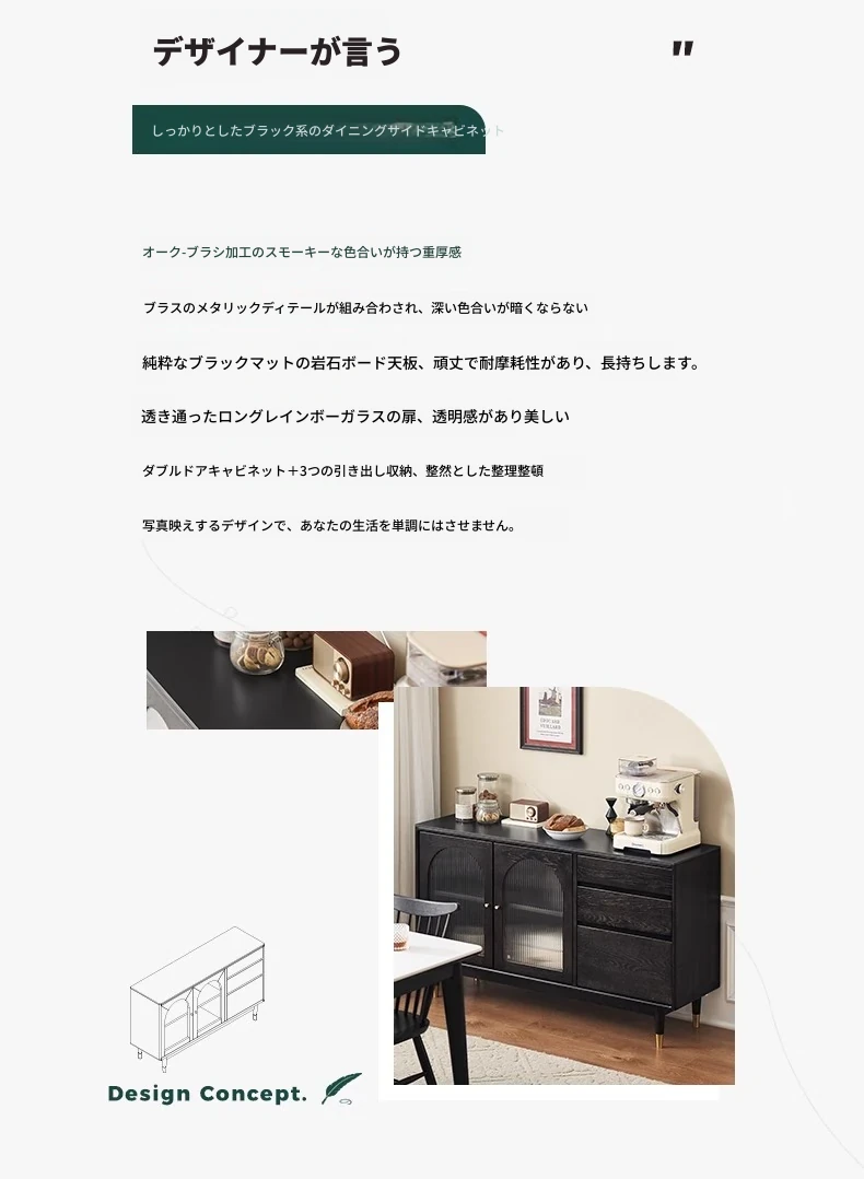 オリジナルエレメント無垢材ダイニングサイドキャビネット - ウォール一体型オーク収納キャビネット、軽やかなラグジュアリー感のあるブラックストレージキャビネット、ティーウォーターステーションに最適!