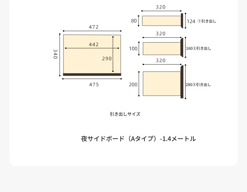 スモーキーカラー - 1.4メートルダイニングサイドキャビネット (1400*400*850mm)