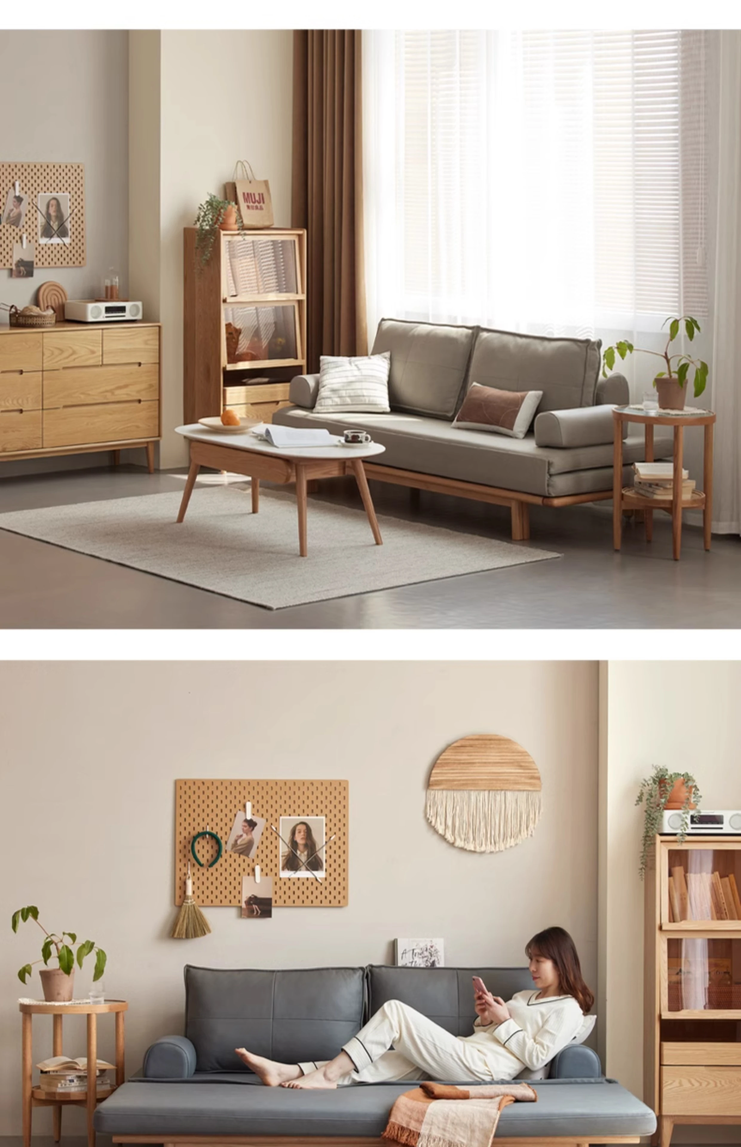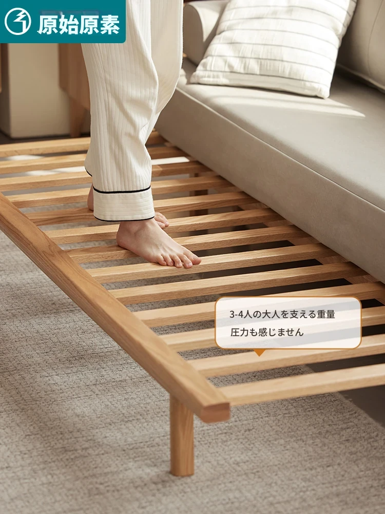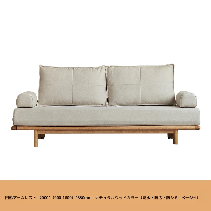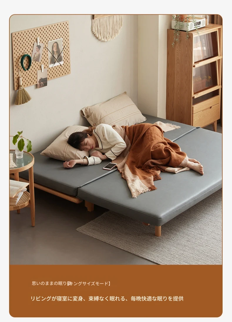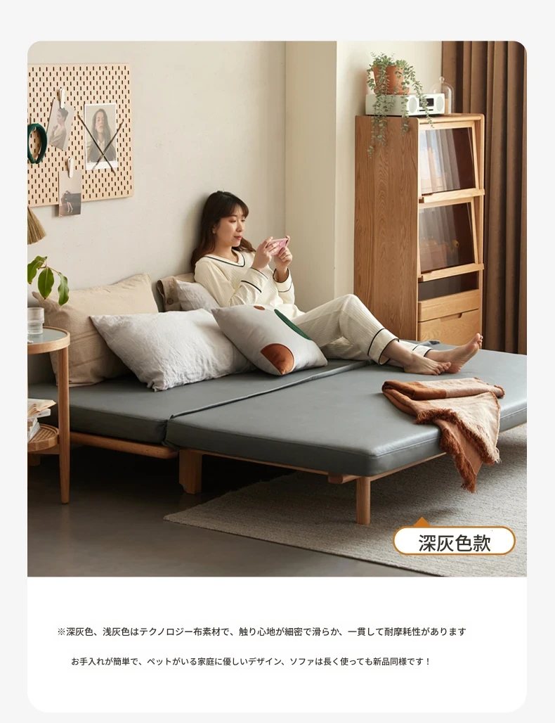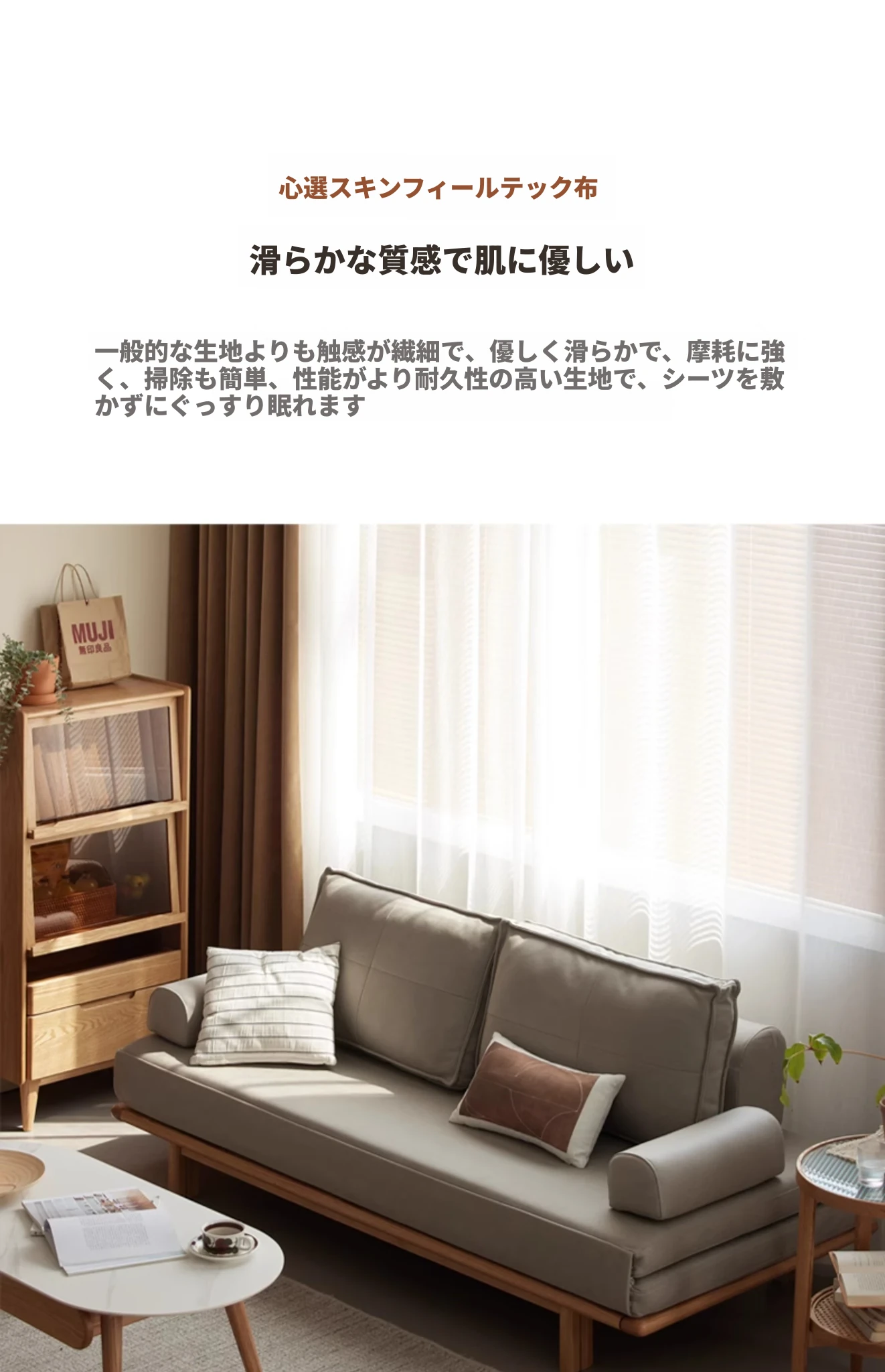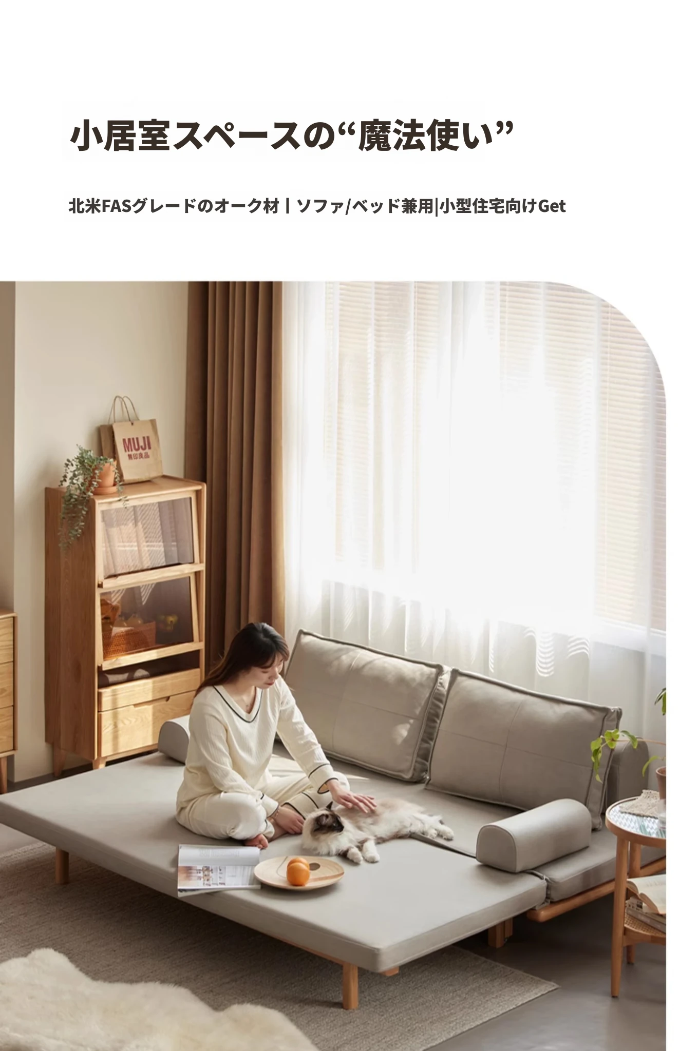 オーガニック無垢材ソファベッド|現代的シンプルデザイン|小さなリビングに最適|オーク材使用|機能的でスライド可能|2WAYソファ|快適なひとときをあなたに!