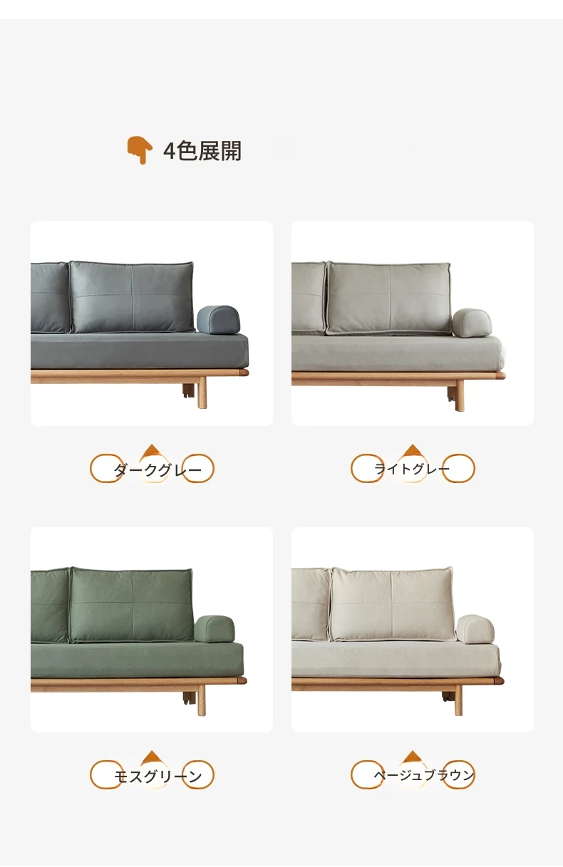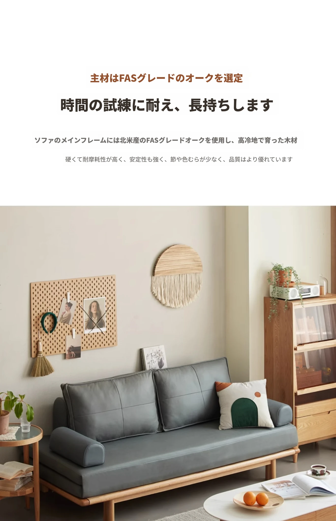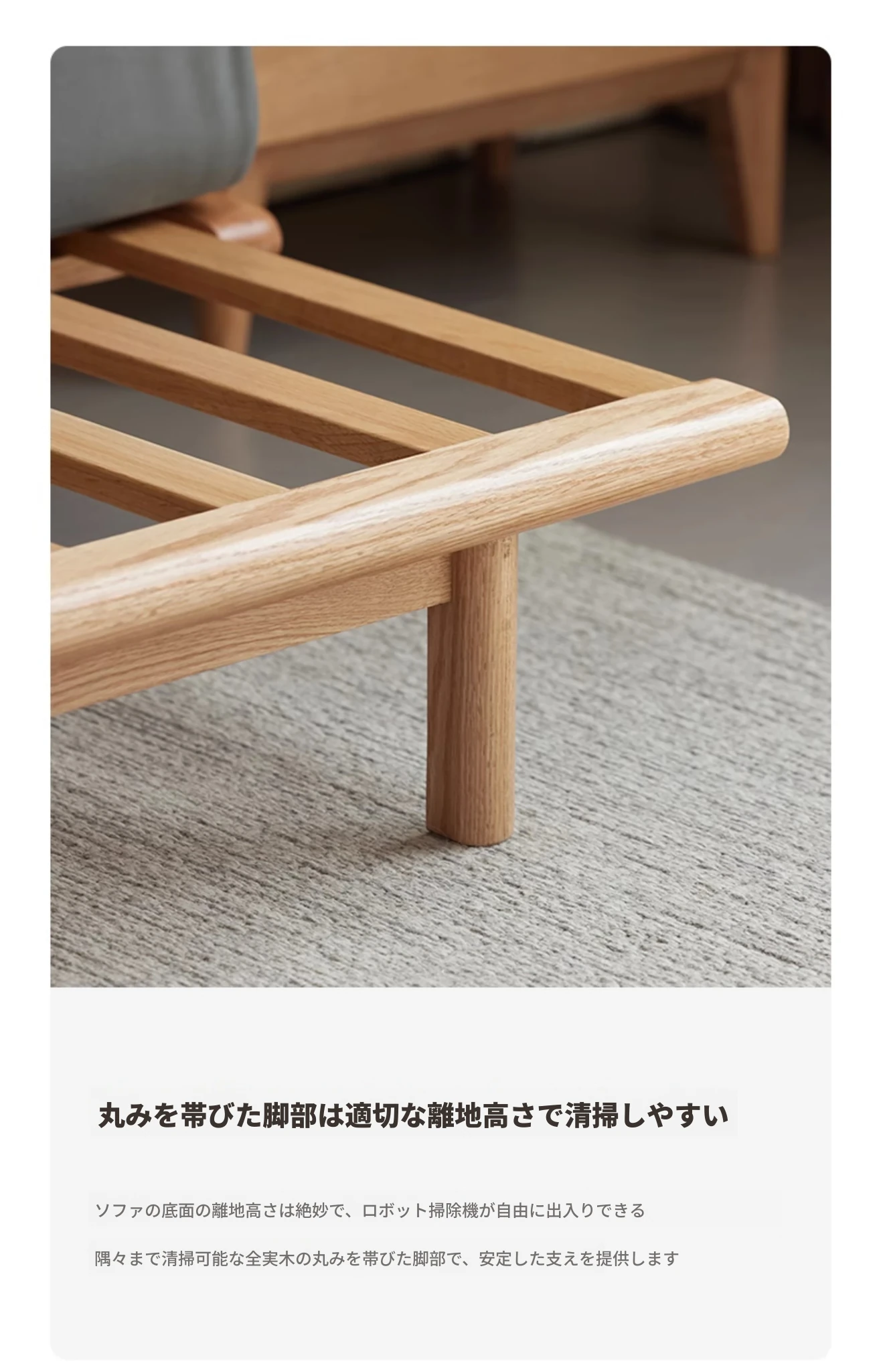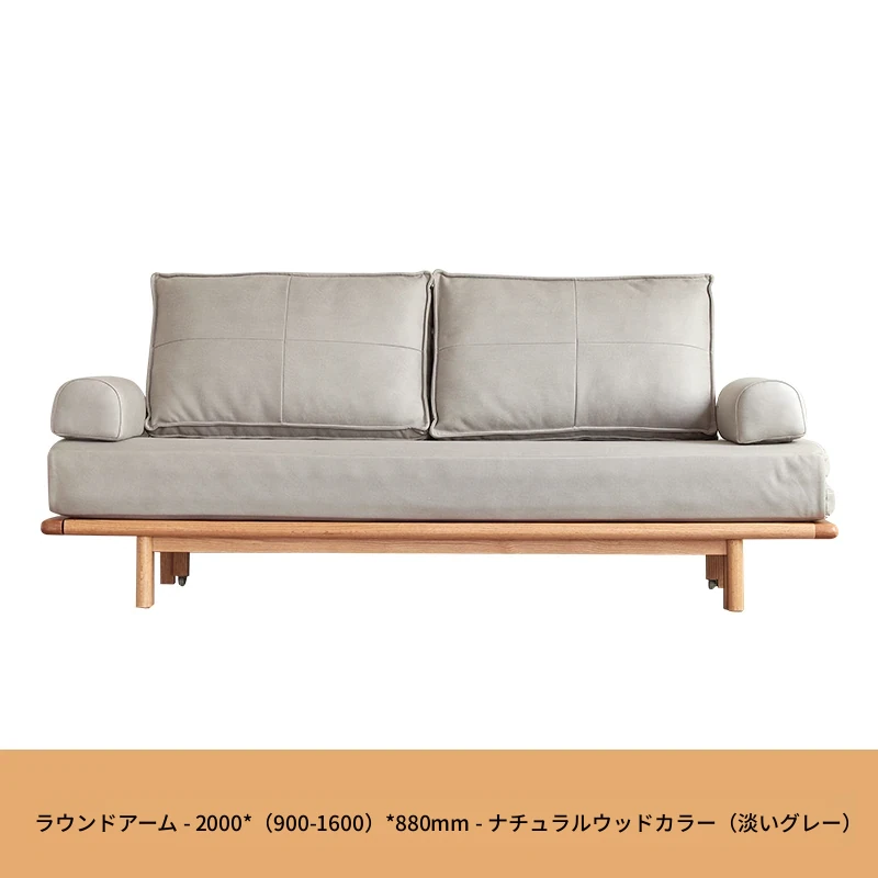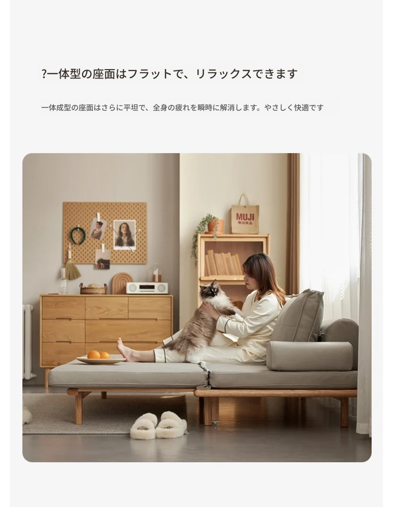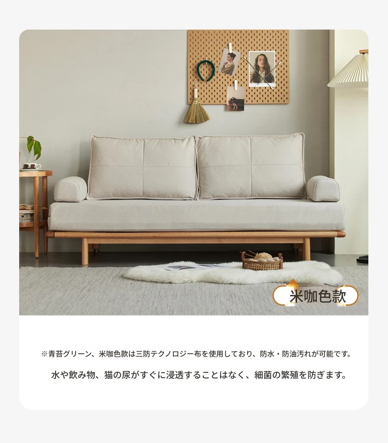 オーガニック無垢材ソファベッド|現代的シンプルデザイン|小さなリビングに最適|オーク材使用|機能的でスライド可能|2WAYソファ|快適なひとときをあなたに!