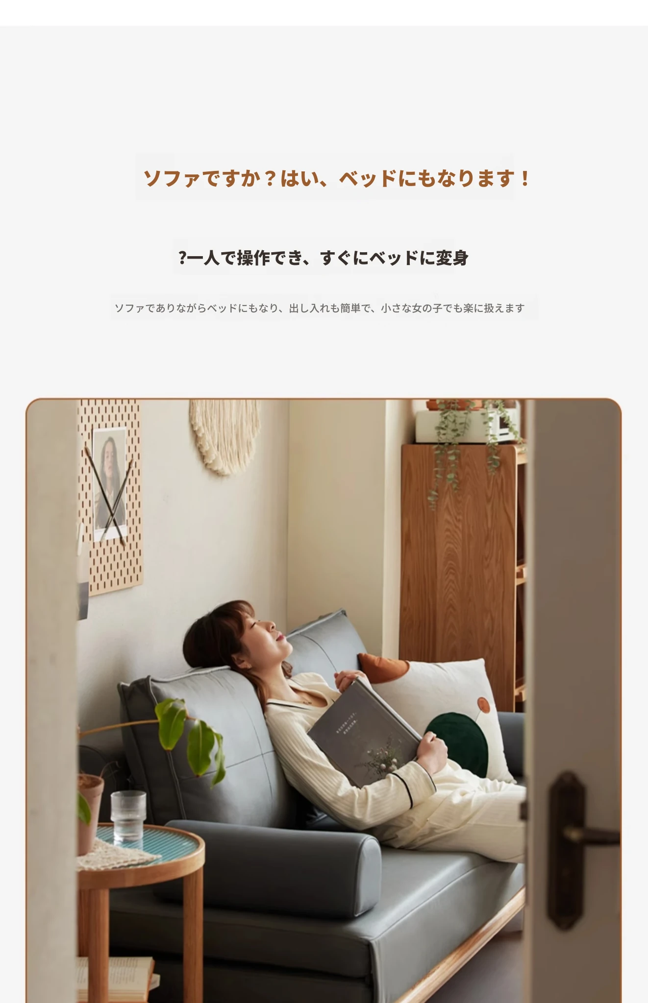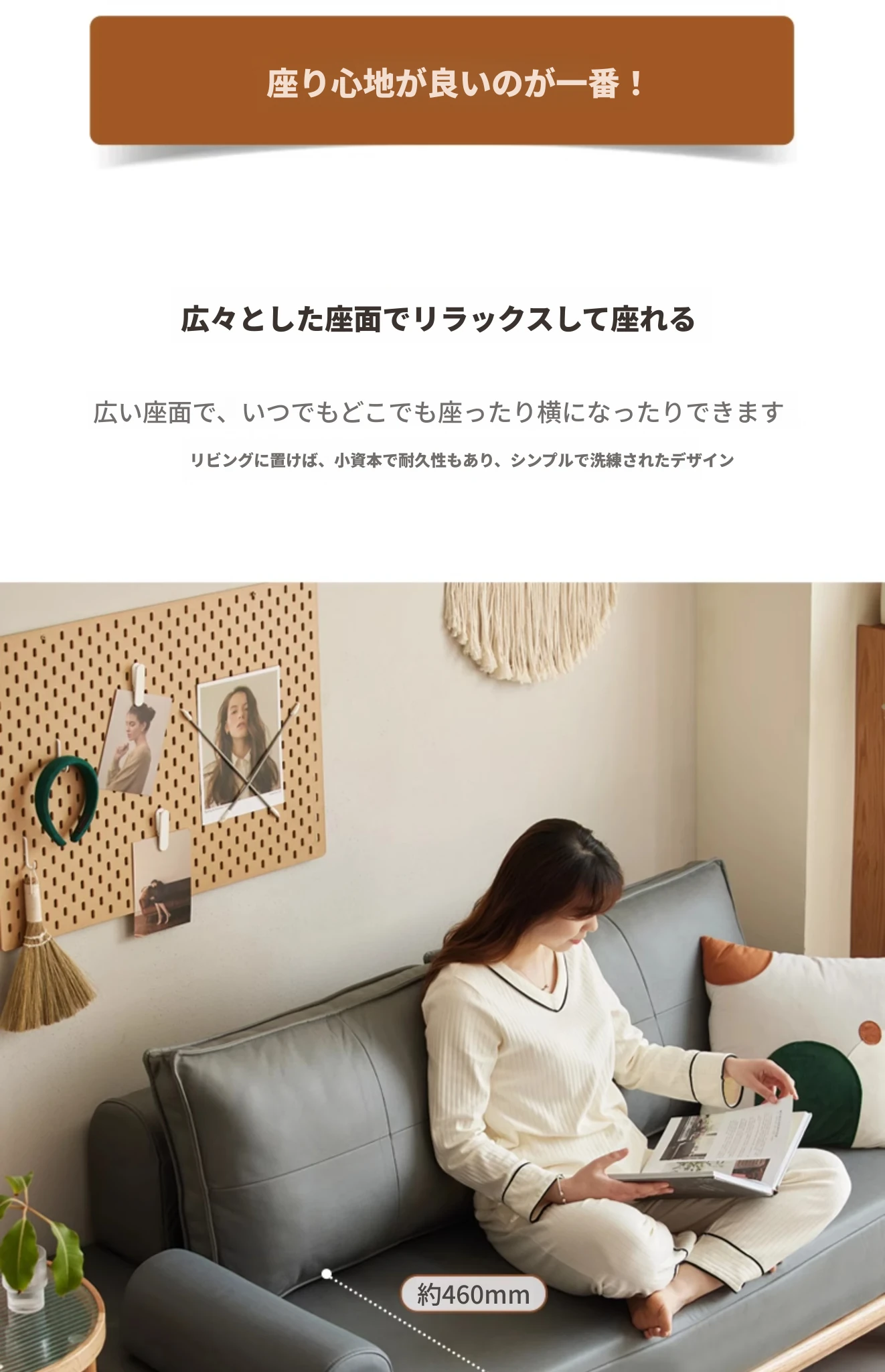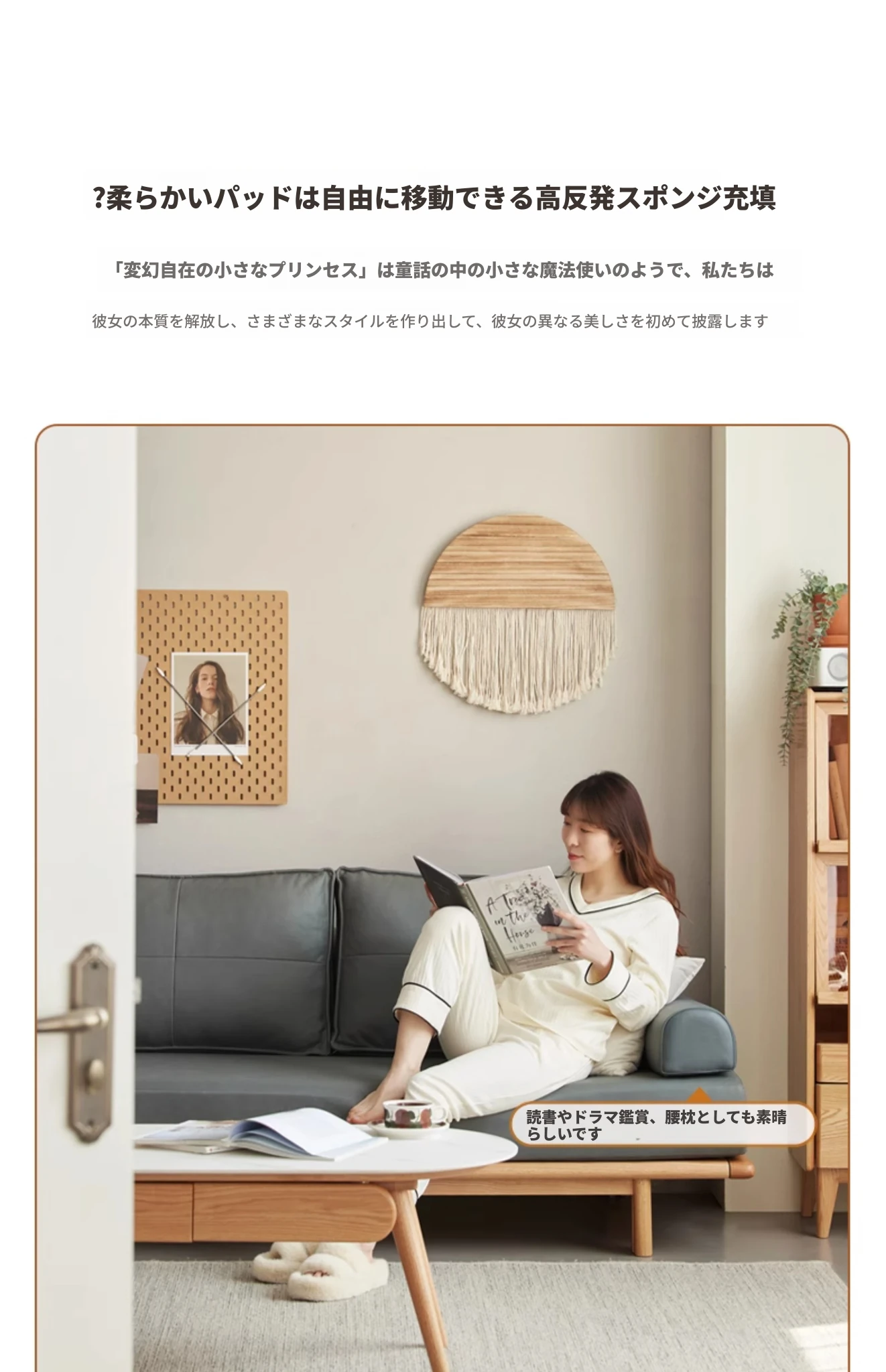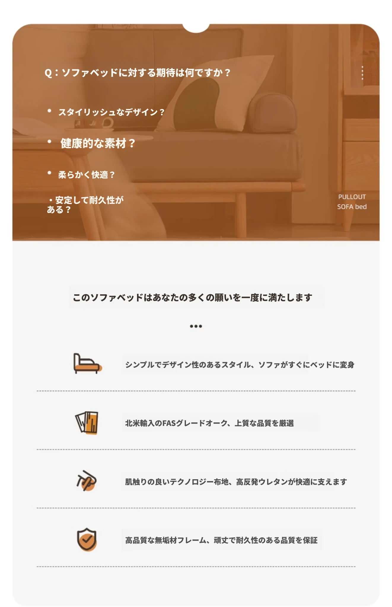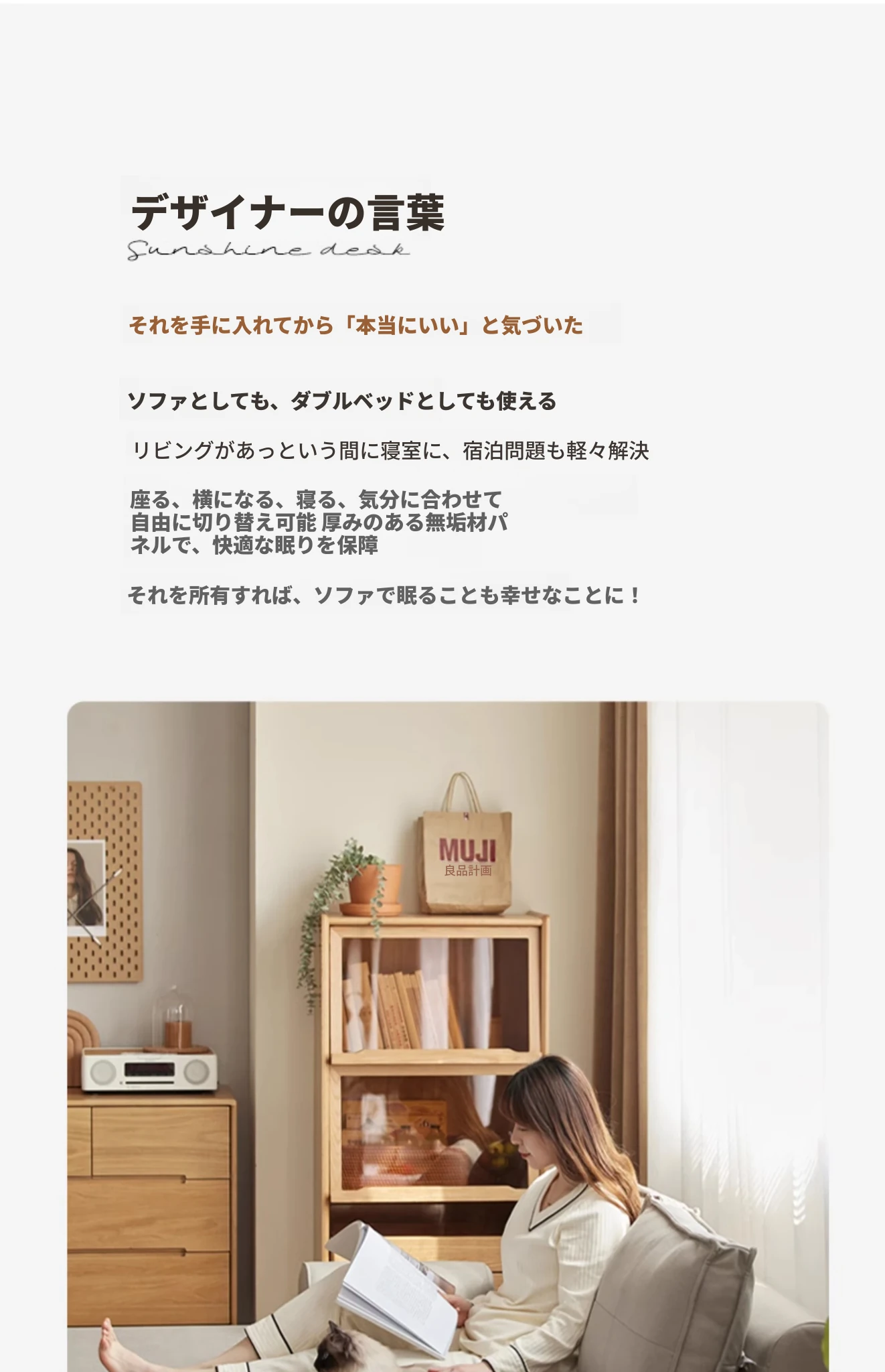 オーガニック無垢材ソファベッド|現代的シンプルデザイン|小さなリビングに最適|オーク材使用|機能的でスライド可能|2WAYソファ|快適なひとときをあなたに!