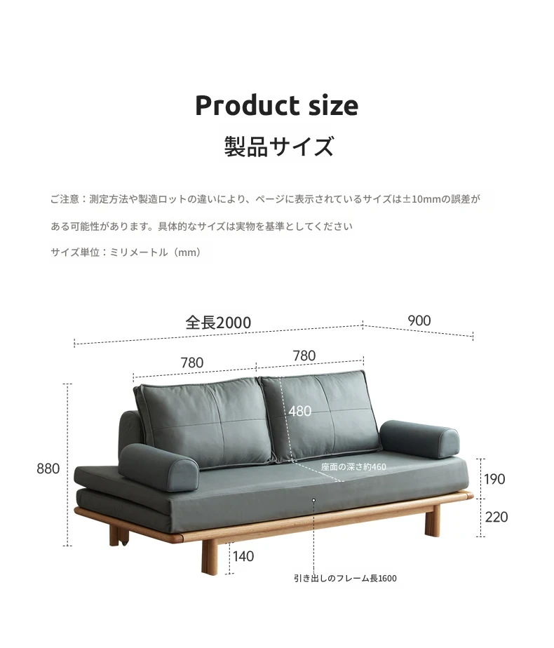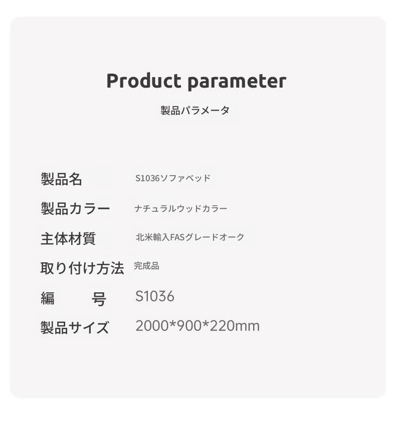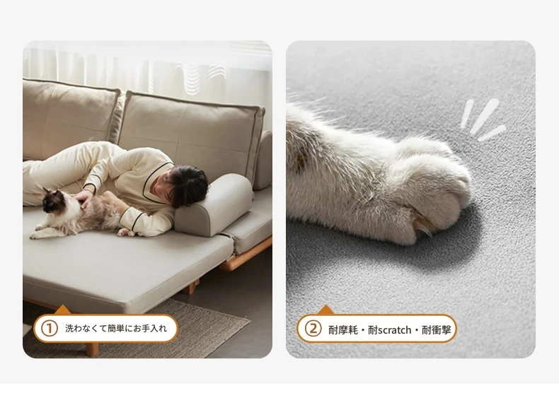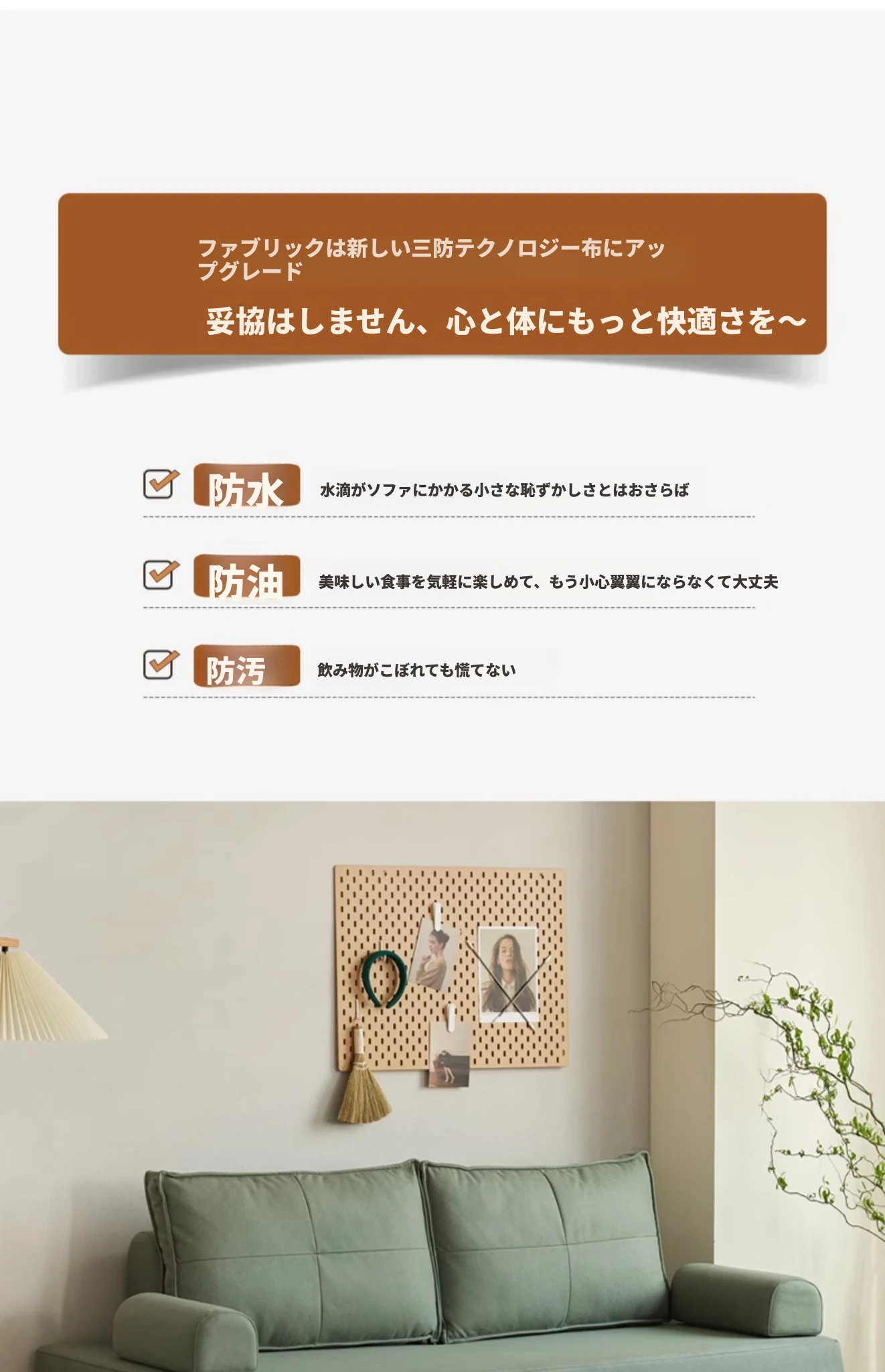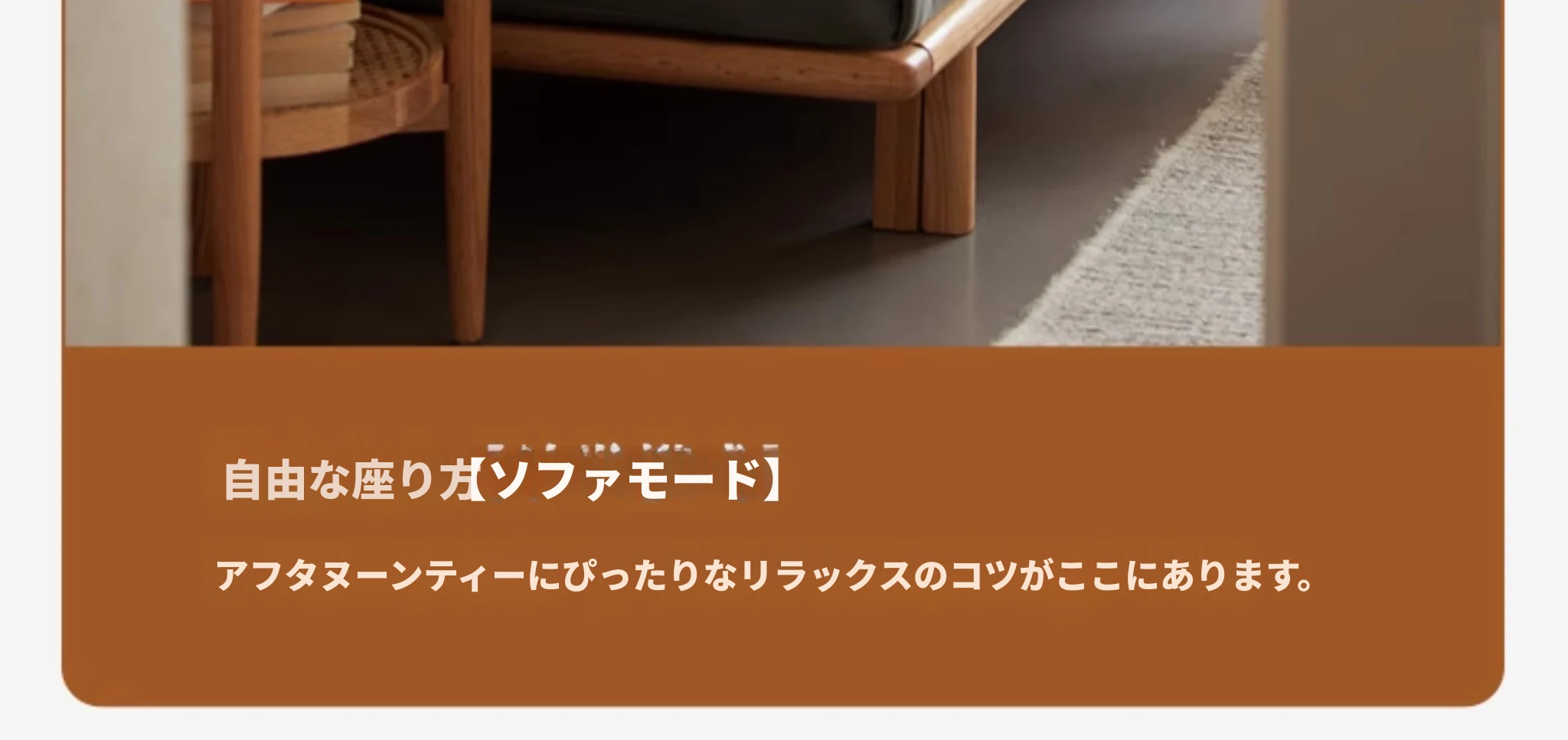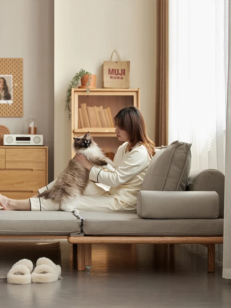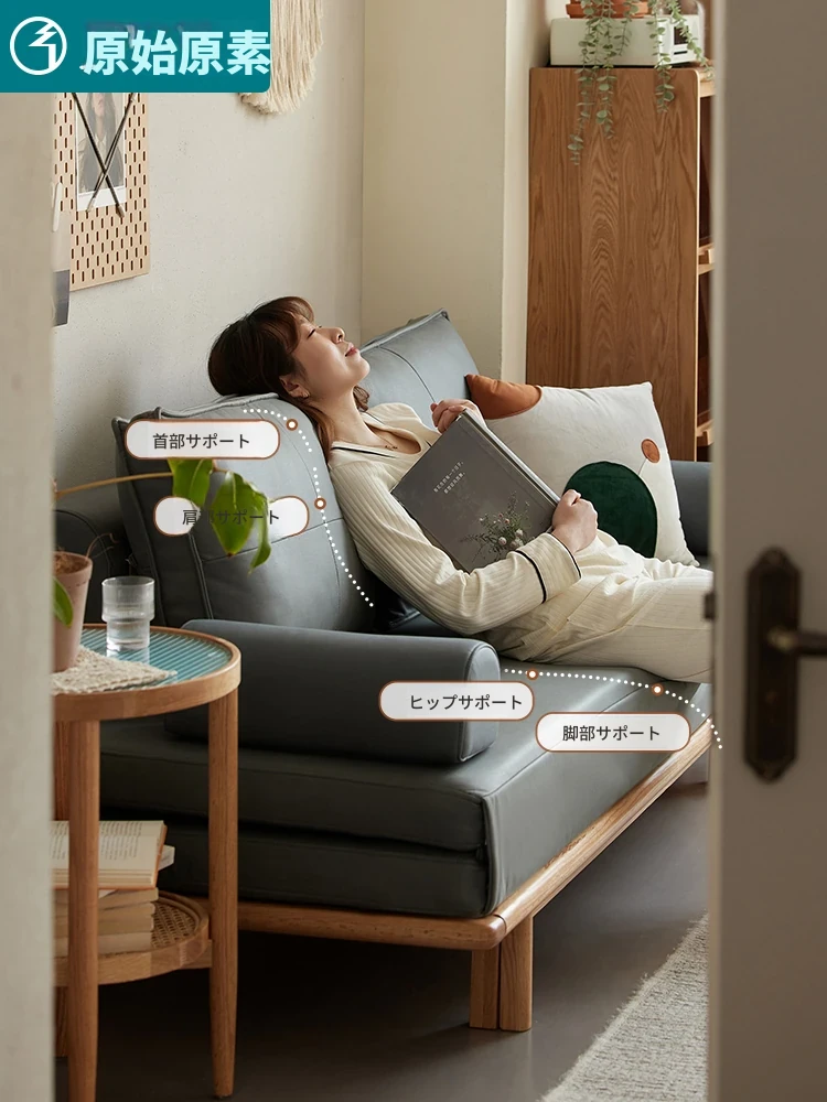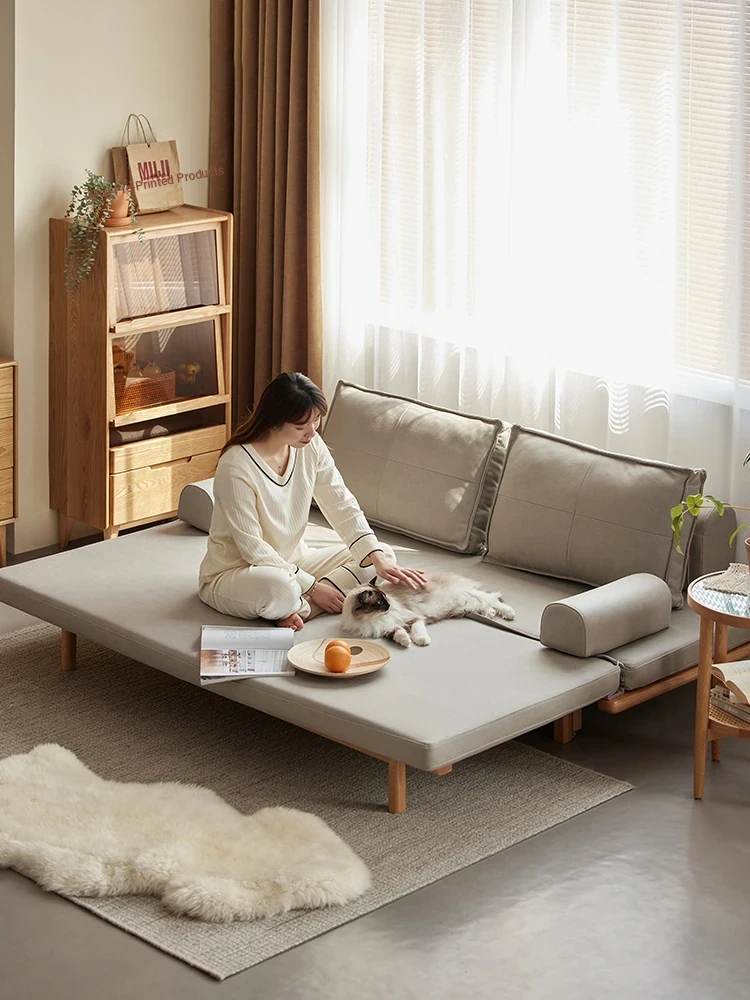 オーガニック無垢材ソファベッド|現代的シンプルデザイン|小さなリビングに最適|オーク材使用|機能的でスライド可能|2WAYソファ|快適なひとときをあなたに!
