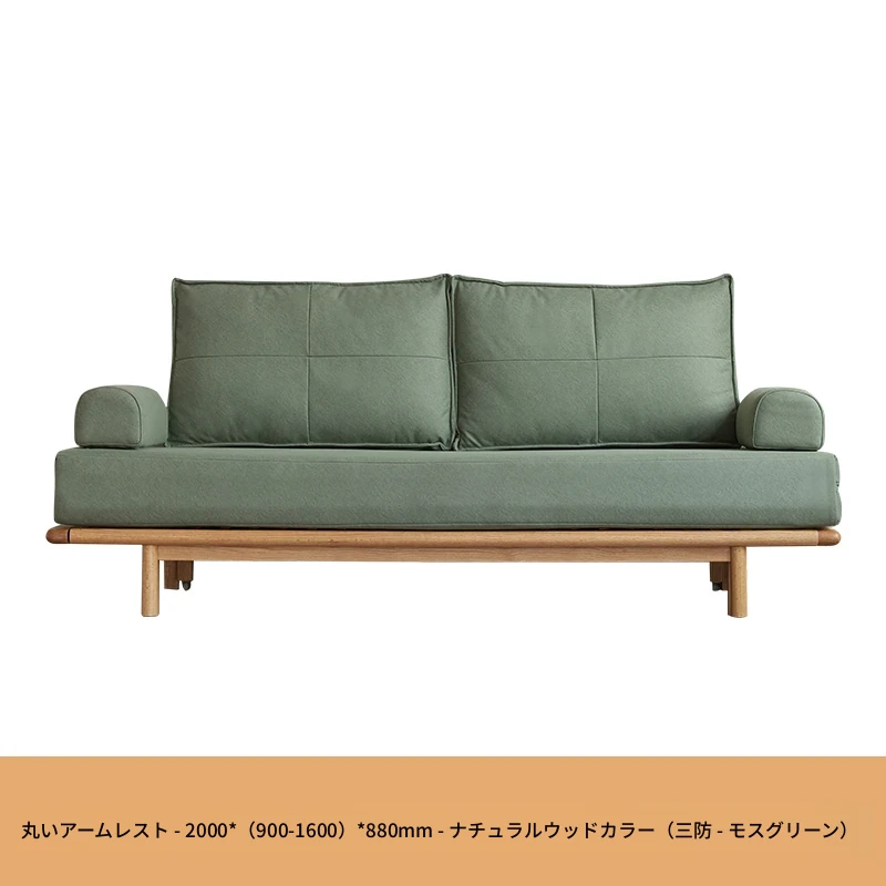 原木色【三防ファブリック青苔緑】ソファベッド(2000*(900-1600)*880mm)
