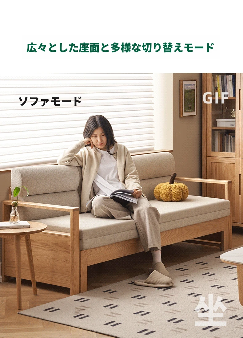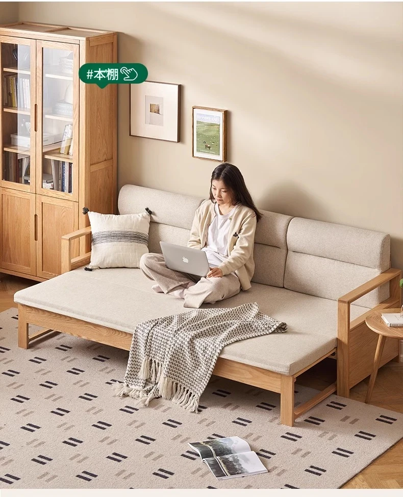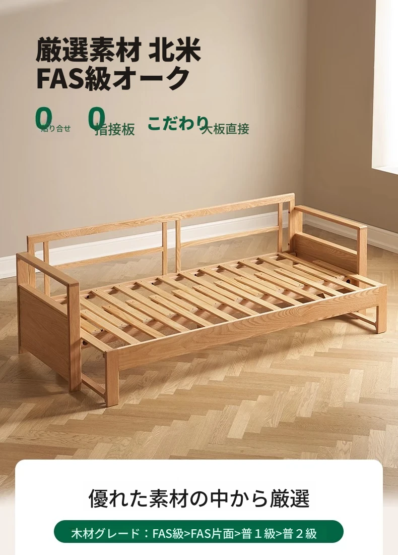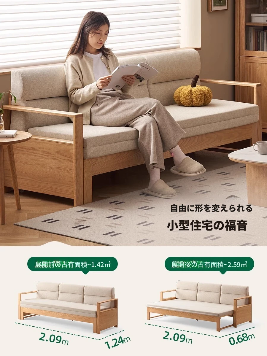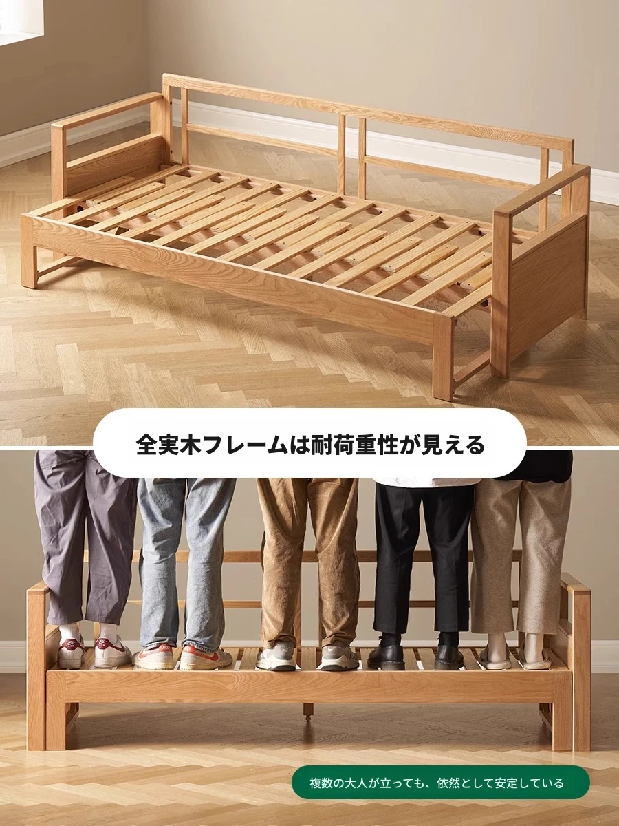 北欧スタイルの実木ソファベッド!収納便利な伸縮タイプ、小スペースにもぴったりの多機能オーク製折りたたみベッド。おしゃれで快適なリビング空間を実現します!