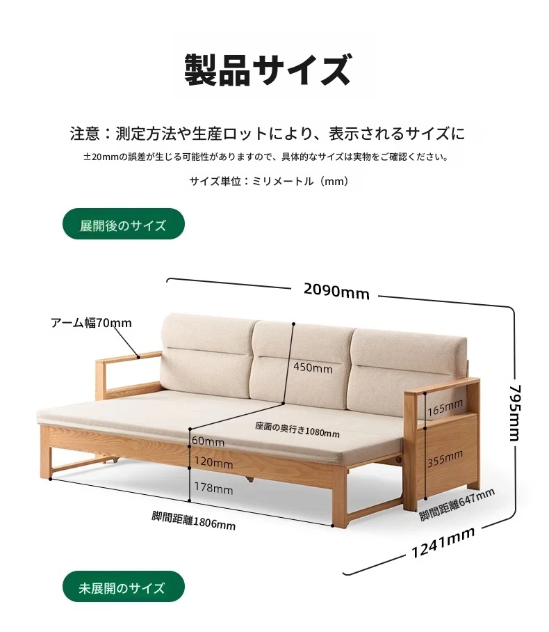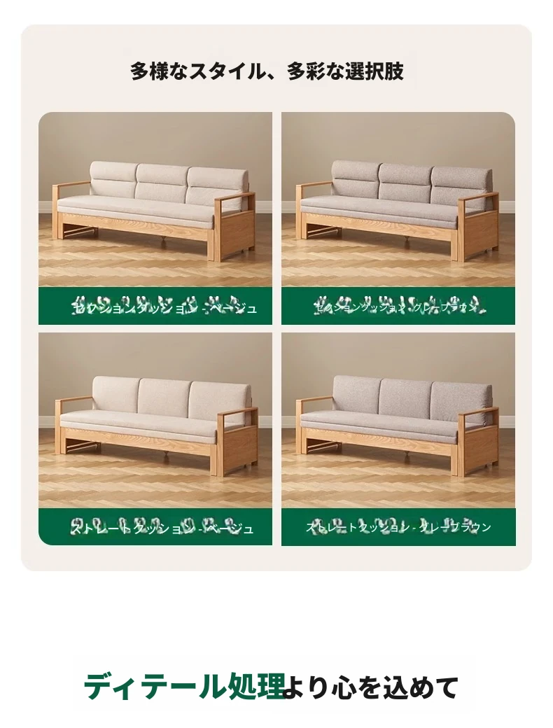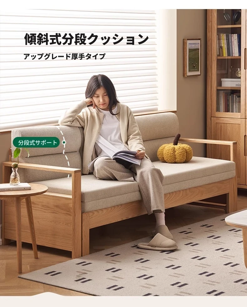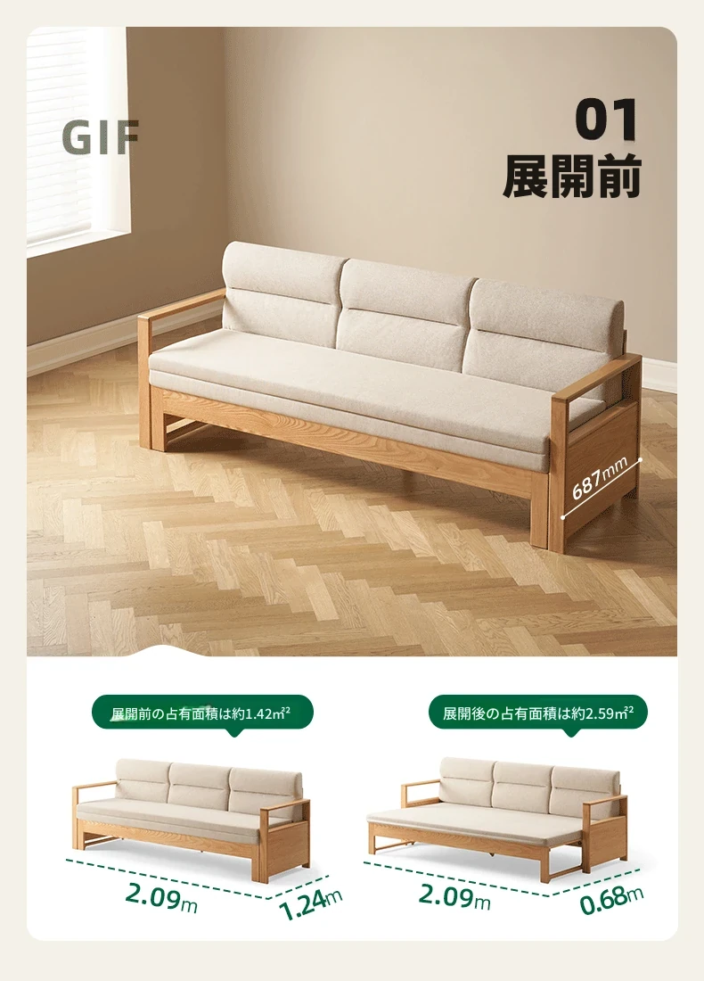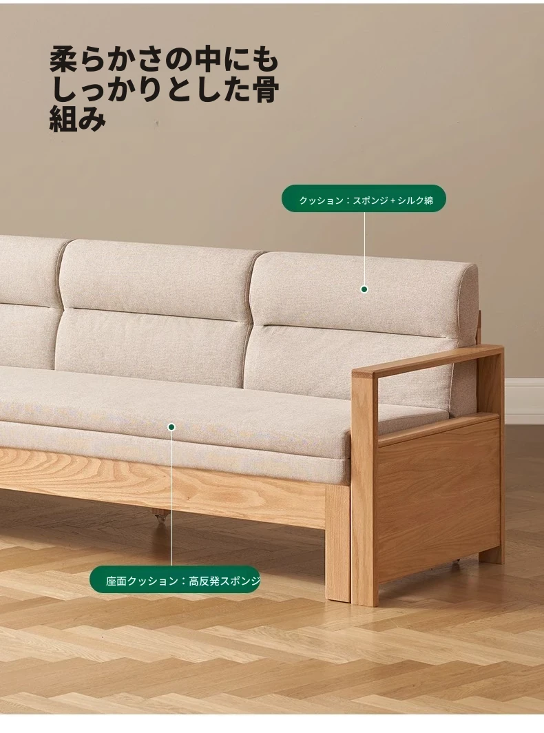 北欧スタイルの実木ソファベッド!収納便利な伸縮タイプ、小スペースにもぴったりの多機能オーク製折りたたみベッド。おしゃれで快適なリビング空間を実現します!