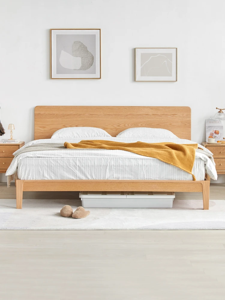 Modern Minimalist Solid Wood Bed - Oak Double Bed for Bedroom, King Size 1.5m/1.8m, Pure Natural Wood Design for Master Bedroom - Elegant, Durable & Stylish!