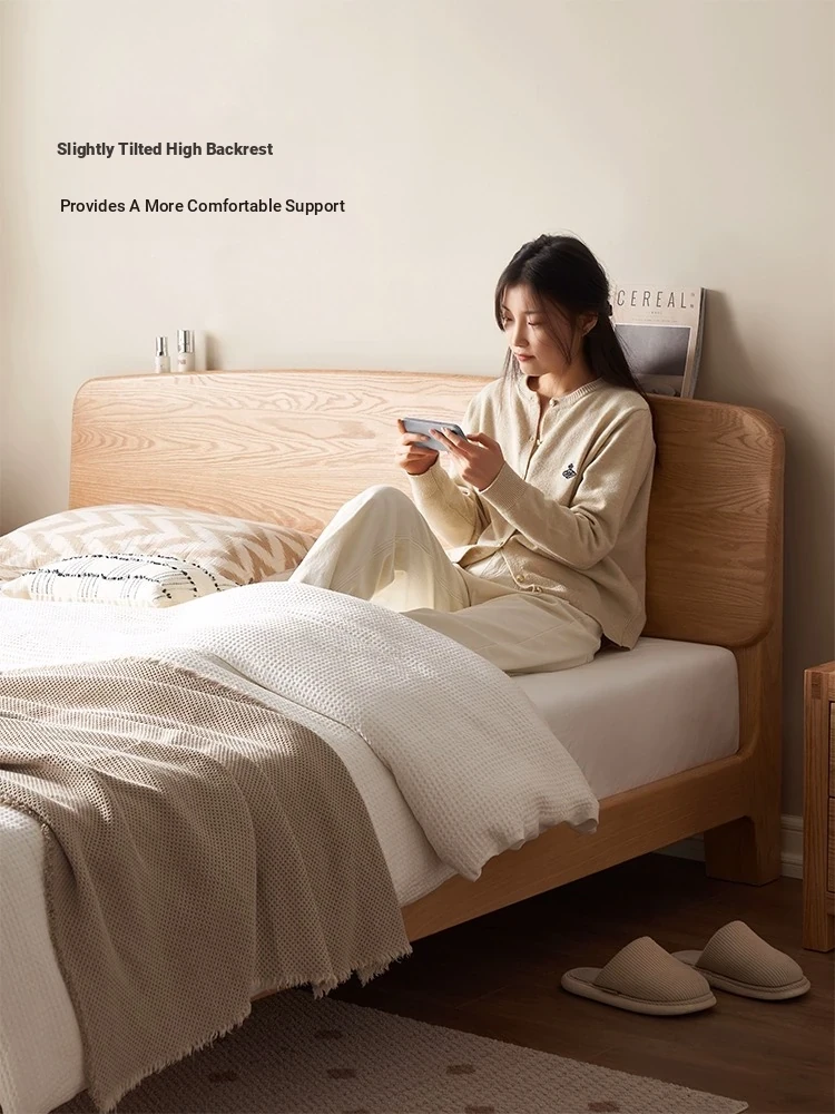 "Nordic Minimalist Solid Wood Bed for Small Bedrooms – 1.5m & 1.8m Oak Double Bed – Perfect Modern Furniture for Cozy Living Spaces"