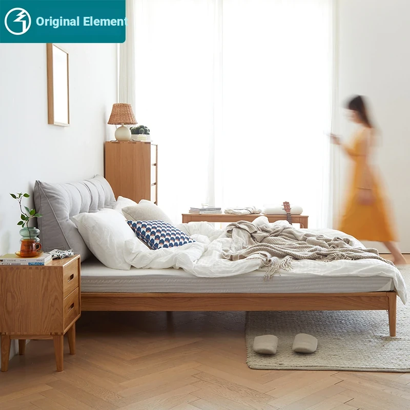 Original Element Solid Wood Bed - Nordic Oak 1.5m/1.8m Large Panel Modern Minimalist Bedroom Double Bed in Natural Wood Finish