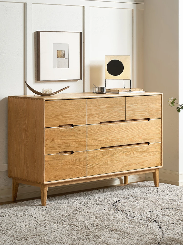 原木の美しさを引き立てる北欧スタイルの7段チェスト - 小スペースにぴったり、高級オーク材使用の9段収納 - おしゃれな5段タンスで快適な寝室を実現!