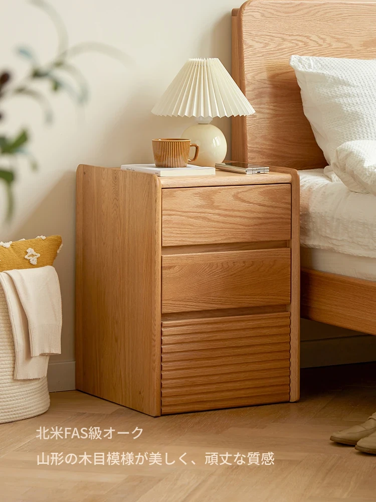 北欧スタイルの無垢材ベッドサイドキャビネット - 移動可能な収納ボックス付き!小型の家庭用オーク製マルチストレージキャビネットで、あなたの寝室をすっきり整理!