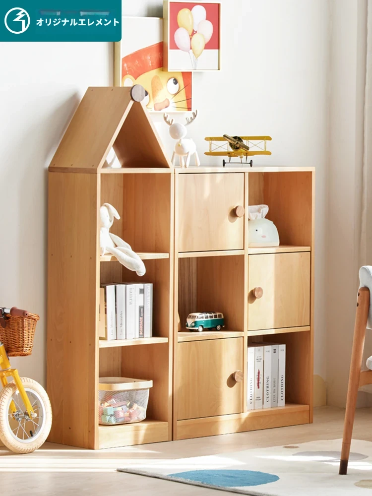 原木の子供用図書館 - モダンでシンプルなフロアブックシェルフ、ブナ材製、キュートなキャラクター収納棚、家庭用展示キャビネット。お子様の成長をサポートする素敵な本棚で、お部屋をかわいく演出!