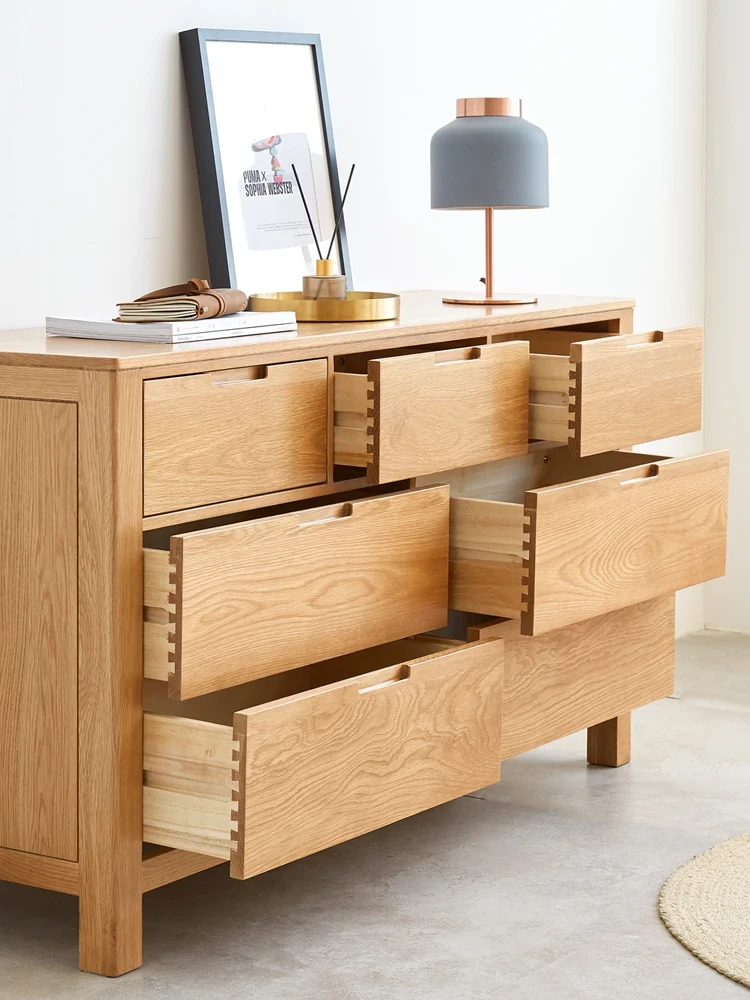 北欧スタイルの無垢材タンス!オーク製の7段チェスト、現代的でシンプルなデザイン。寝室やベッドサイドに最適な収納力抜群の家具で、お部屋をスッキリ整理整頓!