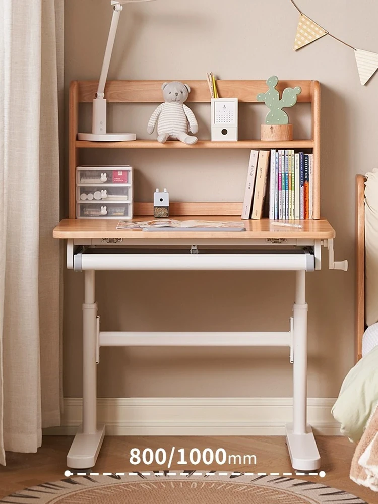 原始原素子供用学習机能デスク - モダンでシンプル、スペースを有効活用!小型のベッドサイドデスクに最適な収納付きのデザイン。お子様の学びをサポートするスタイリッシュなデスク。