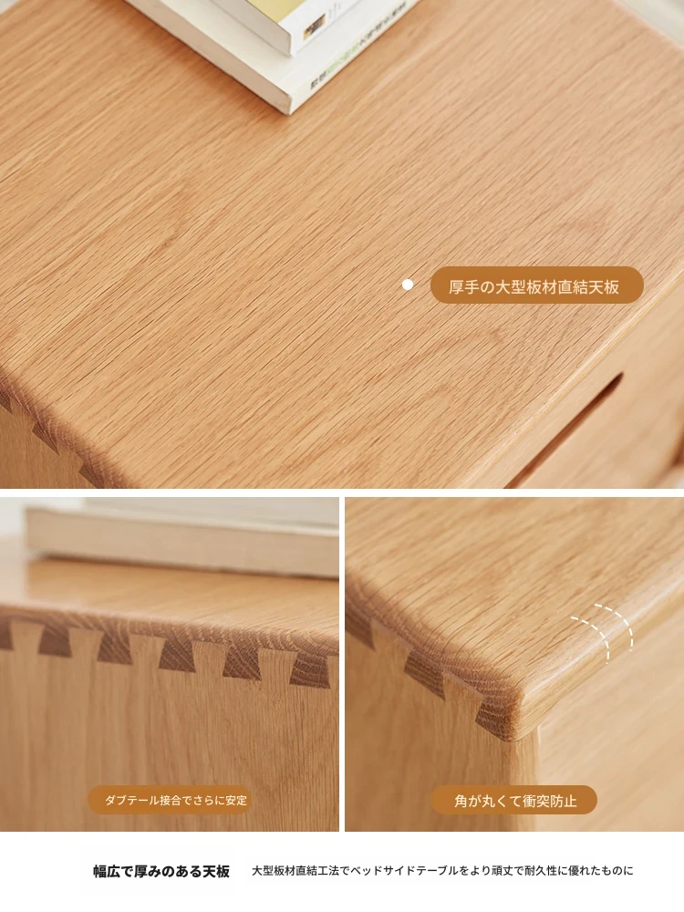 オリジナル素朴スタイル全木製ベッドサイドキャビネット|北欧風シンプルデザイン|オーク製の引き出し付き収納キャビネット|寝室にぴったりなダブルドロワー付きベッドサイド収納!