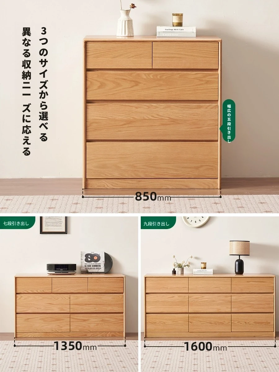 天然素材の本格木製5段チェスト、北欧スタイルのオーク収納キャビネット。壁に寄せて安心設置!ベッドサイドやリビングに最適な両用デザイン。美しい仕上げでお部屋を華やかに彩ります!
