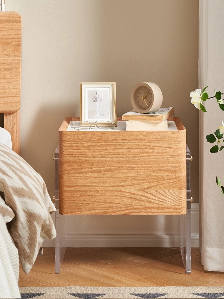 原始の自然素材使用!モダンなデザインの無垢材ロッキングファイドベッドサイドキャビネット - シンプルでスタイリッシュな寝室用収納家具。すっきりした収納で、あなたの生活空間を美しく整理整頓。